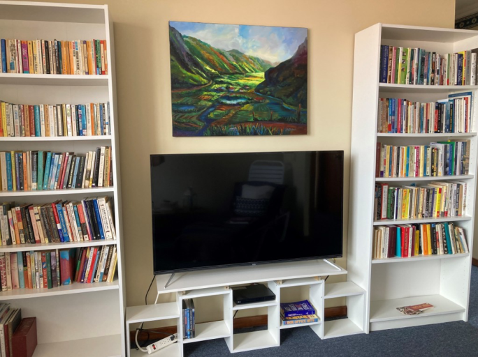 Fell in love with Maite Soriano's rendering of el Cajas, the mountains that frame the city of Cuenca. The space above the TV that I never watch was begging for beauty.